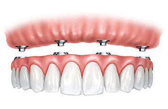 Dört adet implant uygulanarak hiç diş bulunmayan ağızlarda tüm çenelerin rehabilitasyonu kliniğimizde kolaylıkla sağlanmaktadır. İmplant tedavisi diş çekiminden daha kolay denilebilir ağrı minimum seviyede olup, hareketli yani takıp çıkartmalı protez kullanamayan hastalar için hem maliyet hem konfor açısından en iyi seçimdir.